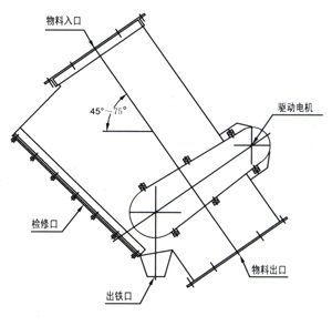 由管道體、驅(qū)動裝置、磁體運(yùn)行裝置三大部分組成,驅(qū)動裝置安裝在管道壁上,通過鏈輪、鏈條帶動管道體內(nèi)磁分離腔的磁體運(yùn)行裝置運(yùn)轉(zhuǎn),永磁體將管道內(nèi)物料中混雜的鐵磁性物質(zhì)通過出鐵口排出管道外。